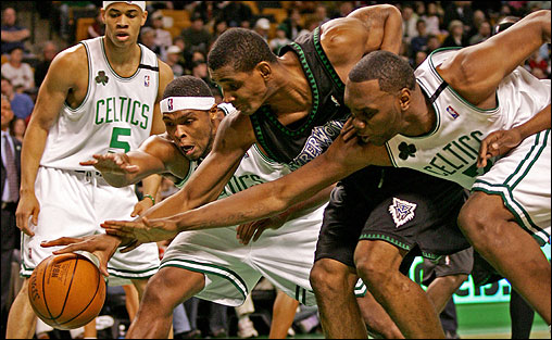 – Minnesota Timberwolves. Año I después de Garnett. Con los dividendos ingresados por el traspaso se ha armado una plantilla sin faro, una orilla donde han ido a parar variados despojos de clase media: Sebastian Telfair, Juwan Howard, Theo Ratliff, Gerald Green, Randy Foye, Marc Blount o Marco Jaric. En la playa VIP, Ricky Davis y Al Jefferson debieran erigirse en líderes, a la espera de la eclosión del prometedor rookie Corey Brewer. Baten desde muy bajo, sin expectativas de nada, así que todo lo logrado será agradable sorpresa. Un lugar en la postemporada suena a utopía, pero serán más competitivos de lo que aparentan.